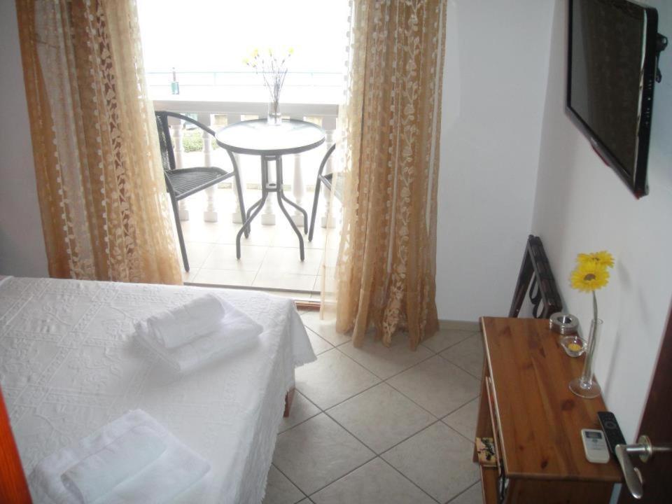 Apartment with Sea View. Opening to a shaded balcony, this air-conditioned apartment enjoys views over the Corinthian Gulf. It has a kitchen with a stove, fridge and dining area. Includes: - free Wi-Fi - TV with satellite channels - window screens - iron - free umbrellas on the beach - beach towels on request. No extra bed can be accommodated. ;