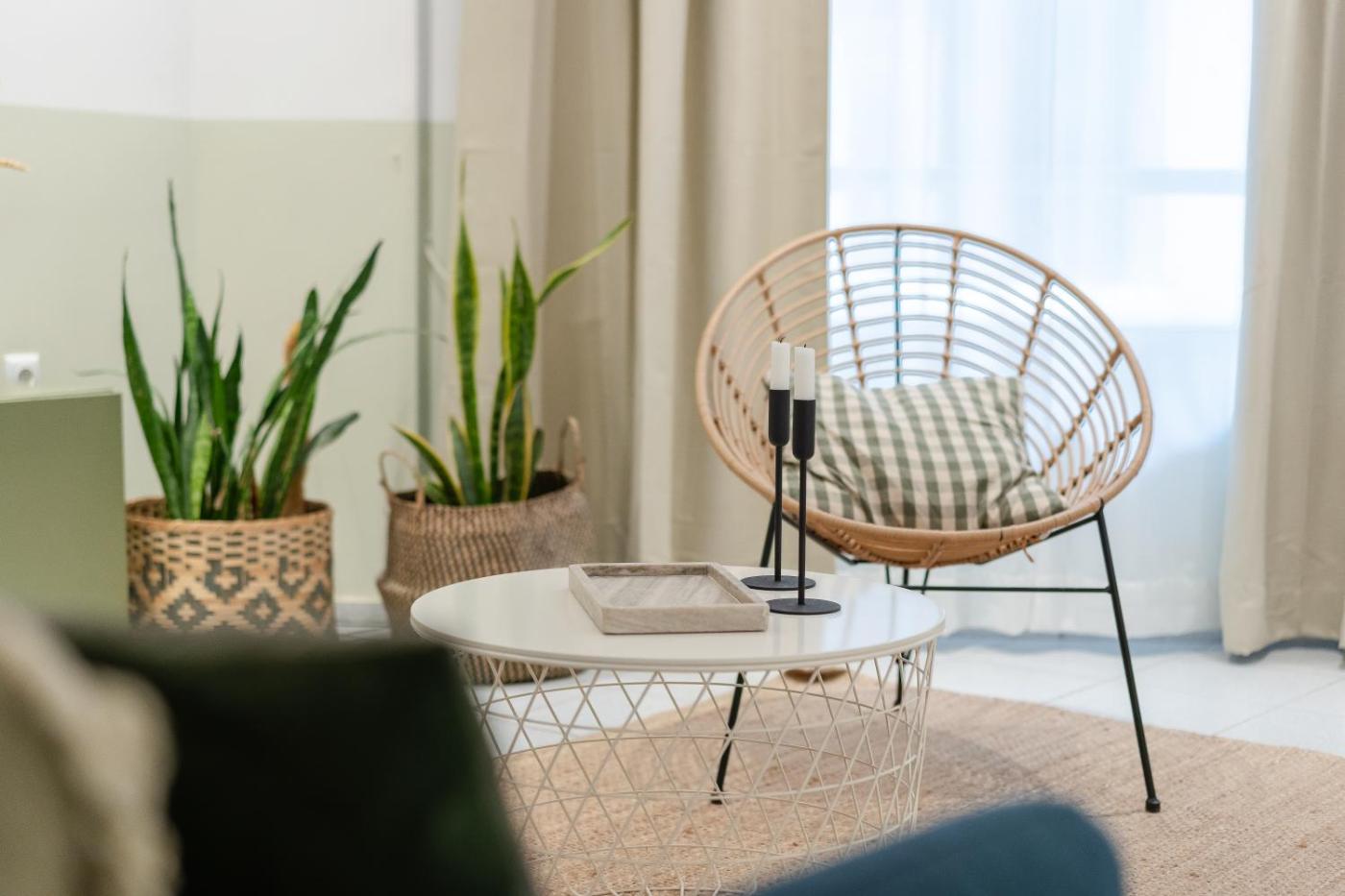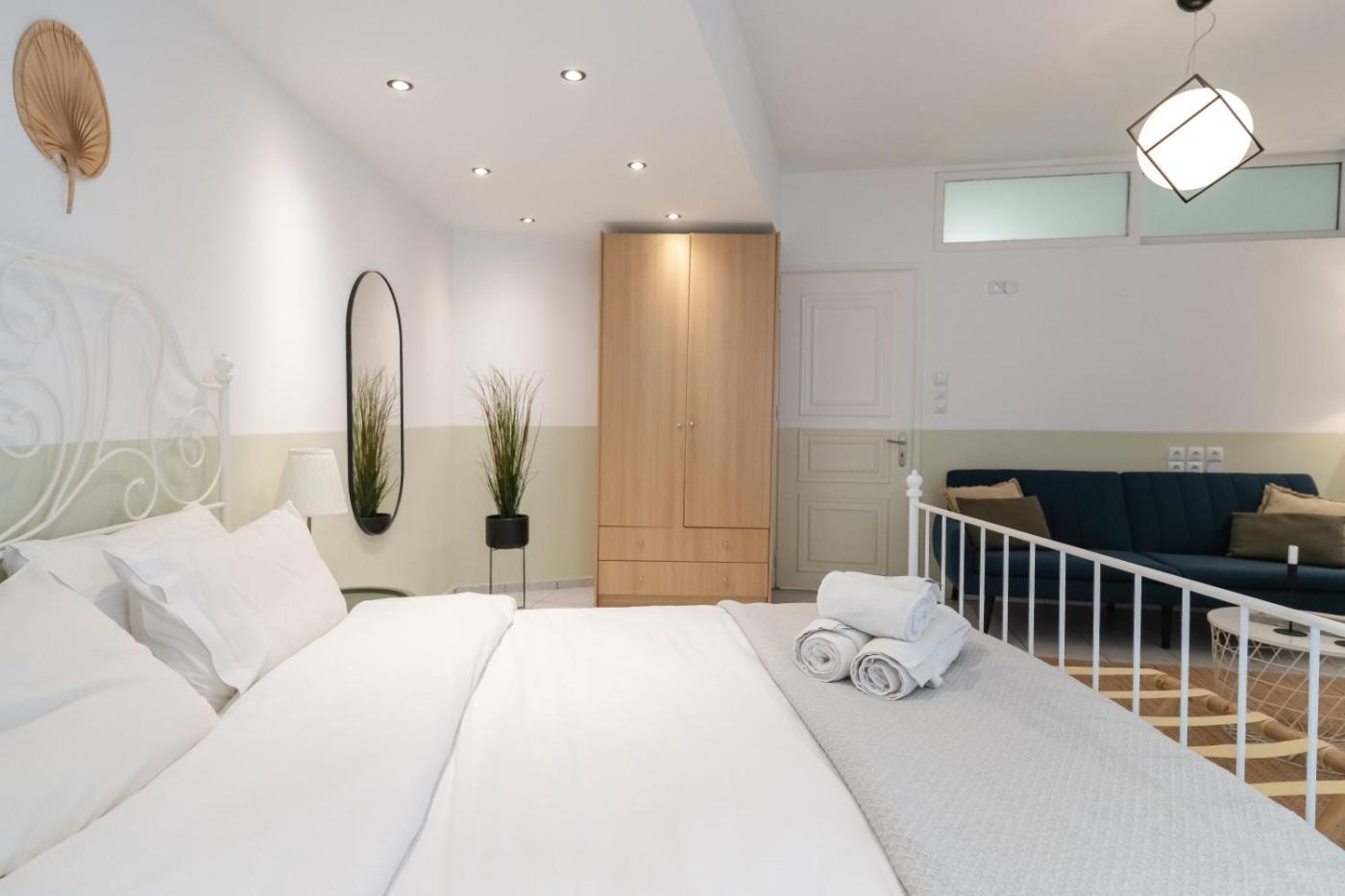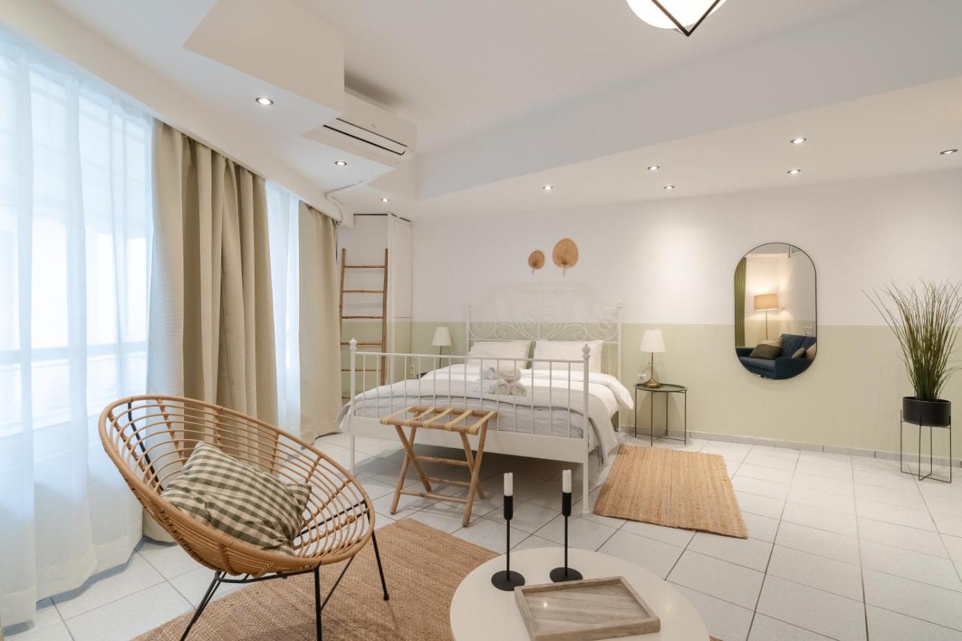 One-Bedroom Apartment. This air-conditioned apartment comprises 1 living room, 1 separate bedroom and 1 bathroom with a shower. Meals can be prepared in the well-fitted kitchen, which comes with a stovetop, a refrigerator, an oven and a toaster. The apartment provides a washing machine, a tea and coffee maker, a dining area, a flat-screen TV with streaming services, as well as city views. The unit offers 2 beds.