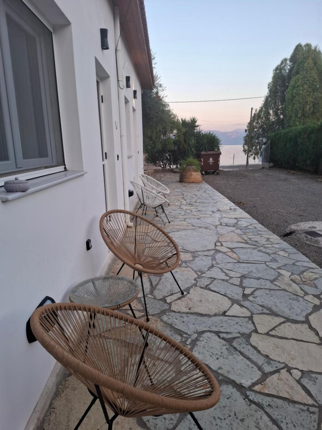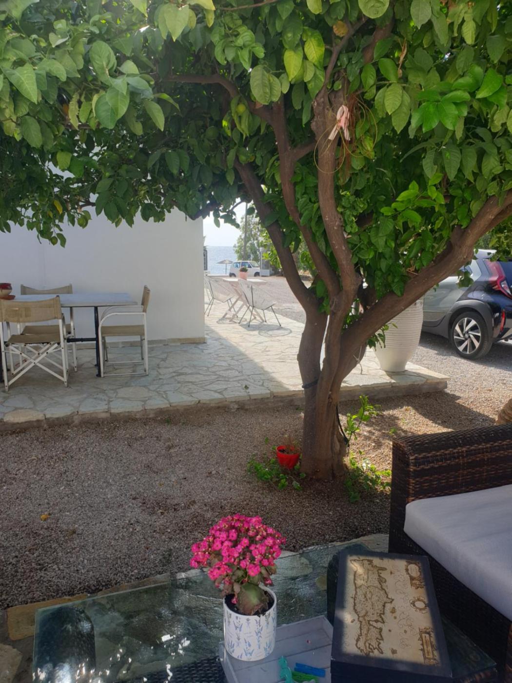 Studio with Sea View. Features a veranda and a lush yard with marble-top table and chairs with direct access to the beach and the seaside, traditional taverns. It includes a mini oven and a large fridge.
