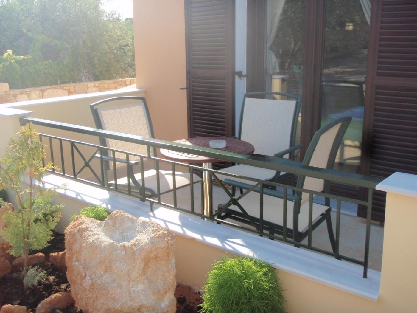 Taverns and mini markets can be found at around 200 metres from Berdoussis. The popular golden beach of Simos is at 3 km. Free private parking is provided on site.