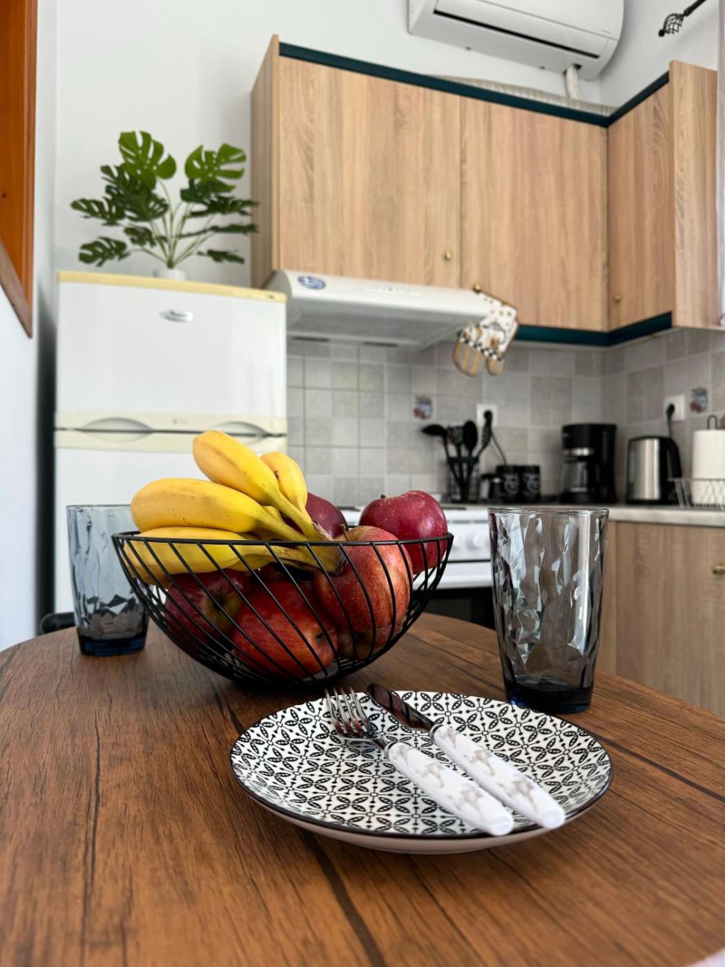 One-Bedroom Apartment. Featuring a private entrance, this air-conditioned apartment consists of a kitchen, 1 bedroom and 1 bathroom with a bath or a shower and a hairdryer. Guests can make meals in the fully equipped kitchen that has a refrigerator, kitchenware and an oven. This apartment features a washing machine, a tea and coffee maker, a flat-screen TV and a terrace. The unit offers 1 bed.