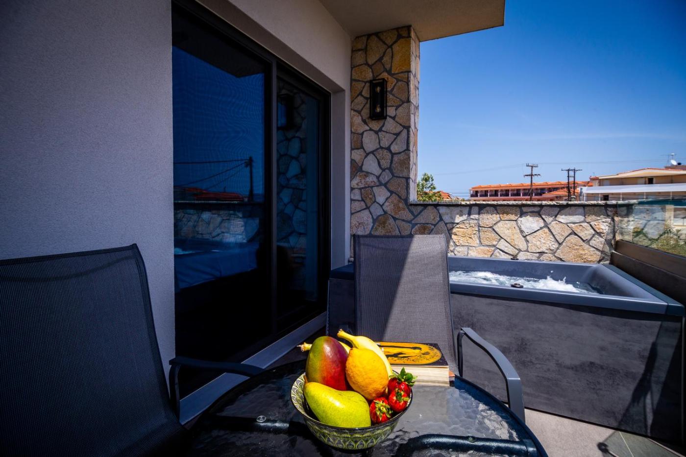 Deluxe Suite with Spa Bath. The hot tub and spa bath are the special features of this suite. This spacious suite comes with 1 living room, 2 separate bedrooms and 2 bathrooms with a walk-in shower and free toiletries. Guests will find a stovetop, a refrigerator, kitchenware and an oven in the fully equipped kitchen. The suite also includes a barbecue. The air-conditioned suite features a flat-screen TV with streaming services, a washing machine, a private entrance, soundproof walls as well as sea views. The unit has 3 beds.