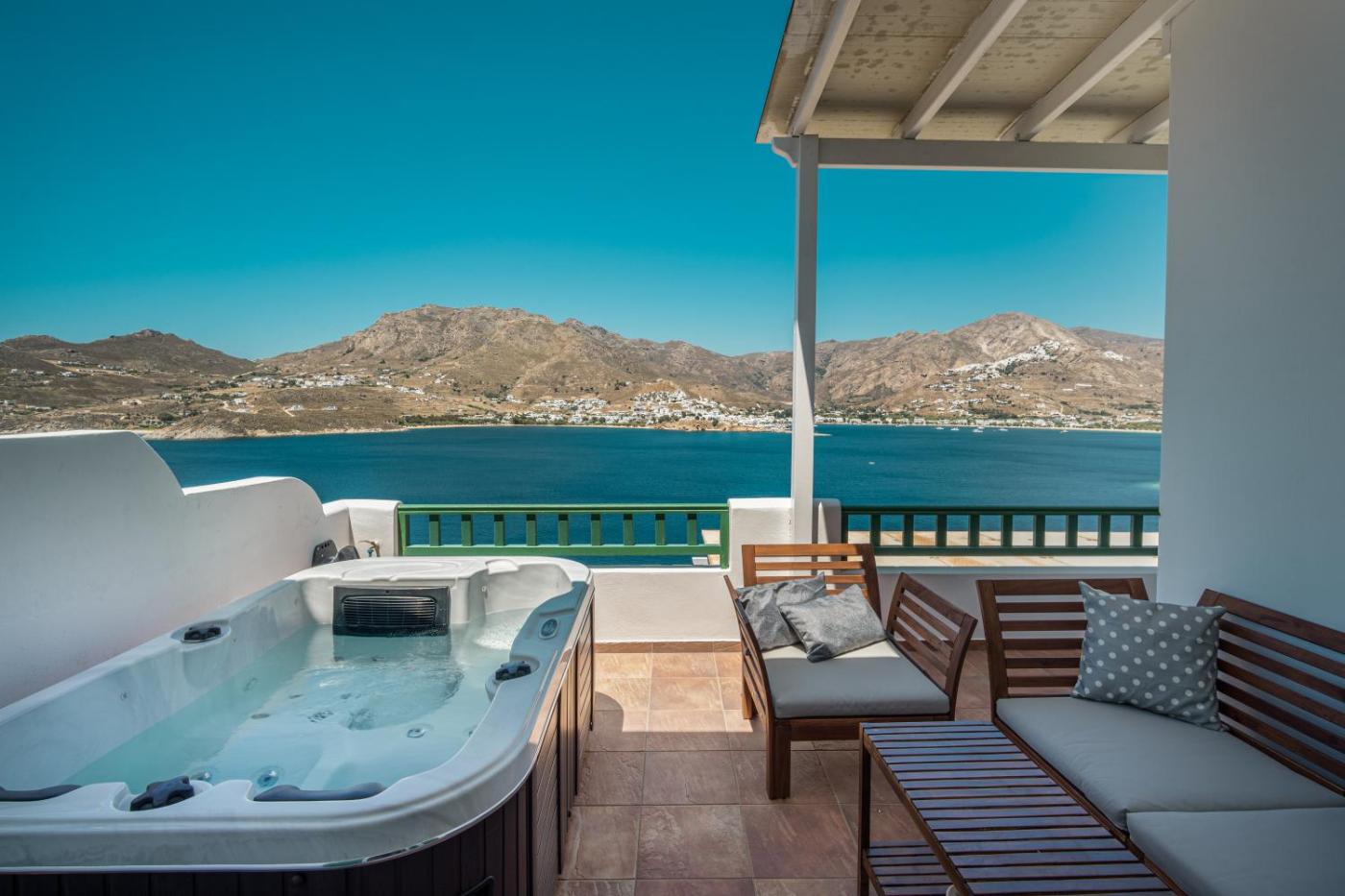 Deluxe Suite with Sea View. Traditionally decorated, split-level apartment with views over the Aegean Sea and Livadi. It includes a separate bedroom, a well-equipped kitchenette with dining area and a bathroom with bath or shower, hairdryer and free toiletries. A flat-screen TV and a safe are available. ;