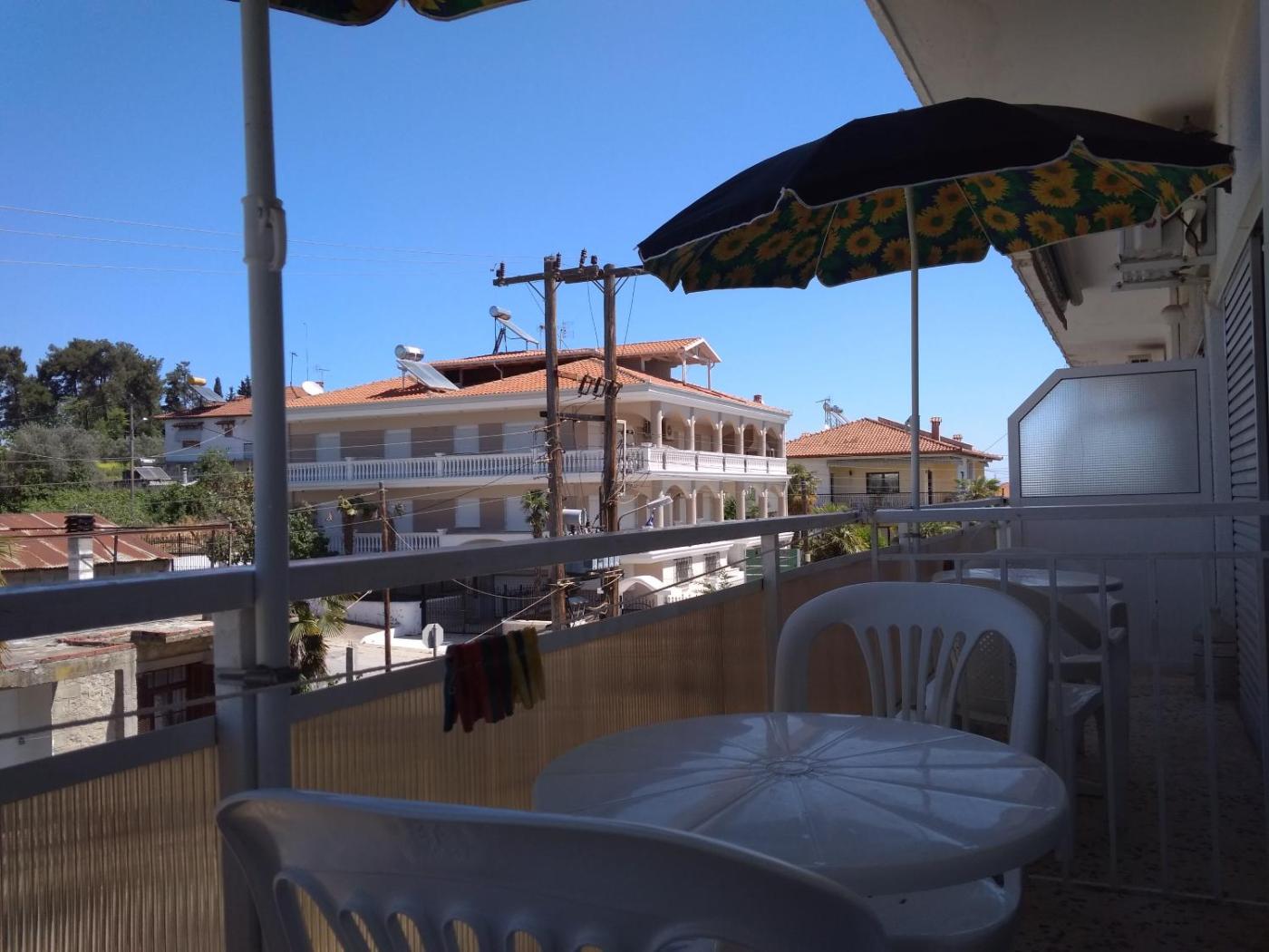 A baby safety gate is also available at Rooms To Let Giannis, while guests can also relax on the sun terrace.