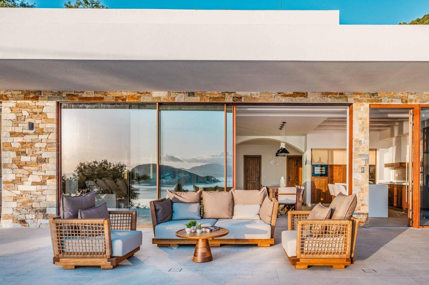 This villa features 4 bedrooms, a kitchen with a dishwasher and an oven, a TV, a seating area and 4 bathrooms. Towels and bed linen are available in the villa.