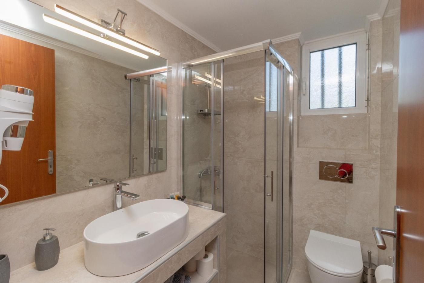 Apartment. This apartments standout feature is the fireplace. Boasting a private entrance, this air-conditioned apartment includes 1 living room, 1 separate bedroom and 1 bathroom with a shower and a hairdryer. Guests will find a stovetop, a refrigerator, kitchenware and an oven in the well-fitted kitchenette. The apartment also features a barbecue. Featuring a terrace with garden views, this apartment also offers a washing machine and a flat-screen TV. The unit has 3 beds.