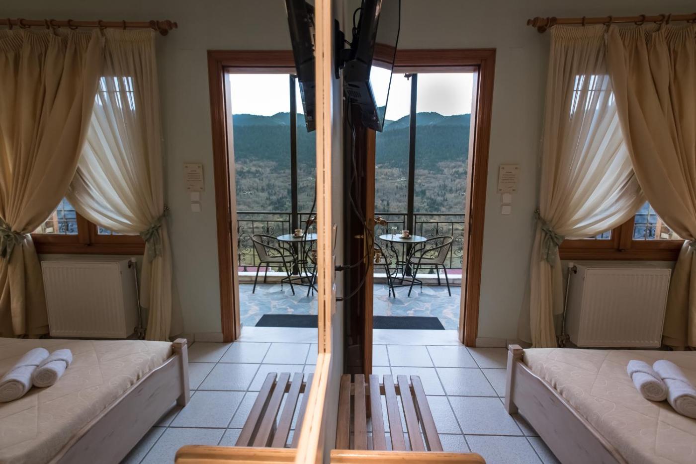 Triple Room with Mountain View. The triple room features a private entrance, soundproof walls, a terrace with garden views as well as a private bathroom boasting a shower. The unit has 3 beds. ;