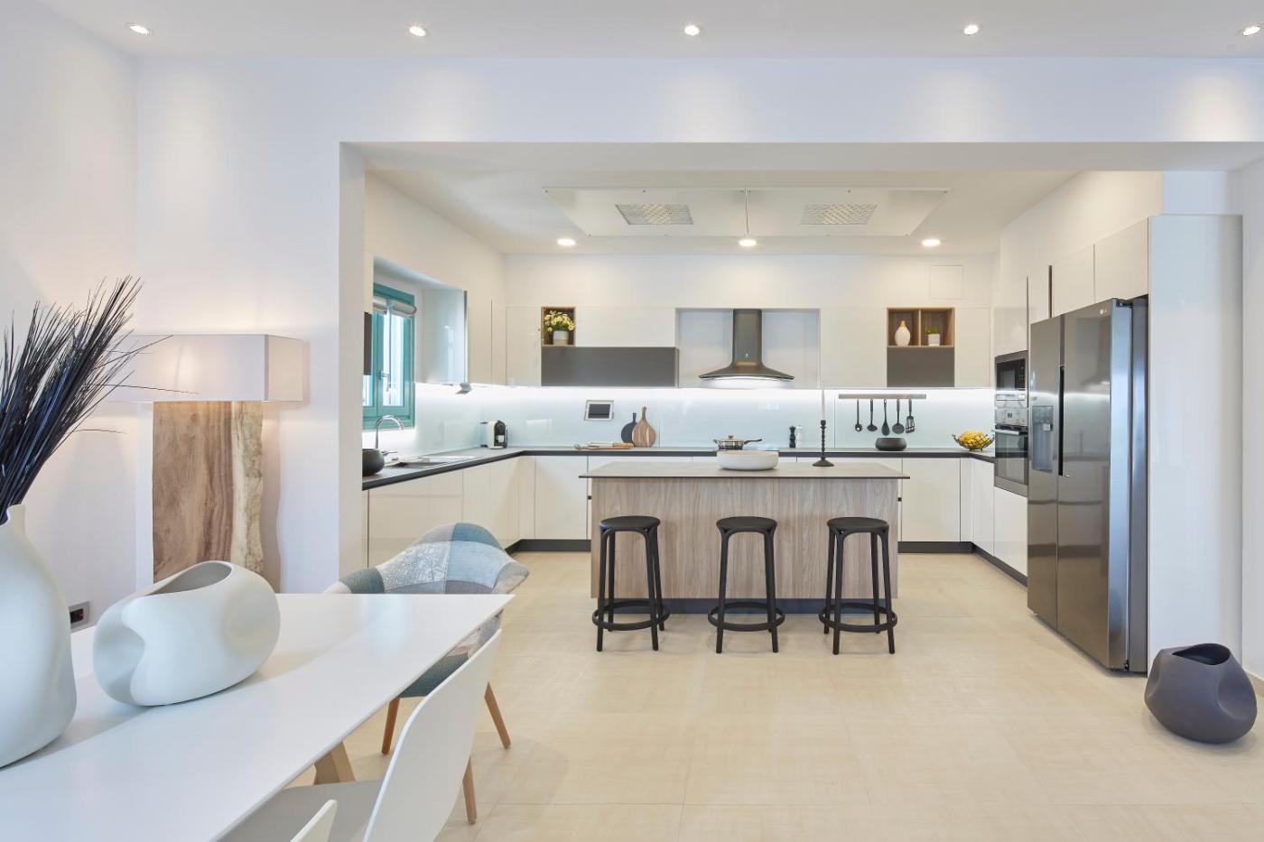Three-Bedroom Villa with Private Pool. This villas standout features are the pool with a view and fireplace. Guests will find a stovetop, a refrigerator, a dishwasher and kitchenware in the kitchen. The villa also offers a barbecue. This air-conditioned villa includes a flat-screen TV with satellite channels, a shared bathroom as well as a terrace with sea views. The unit offers 4 beds.