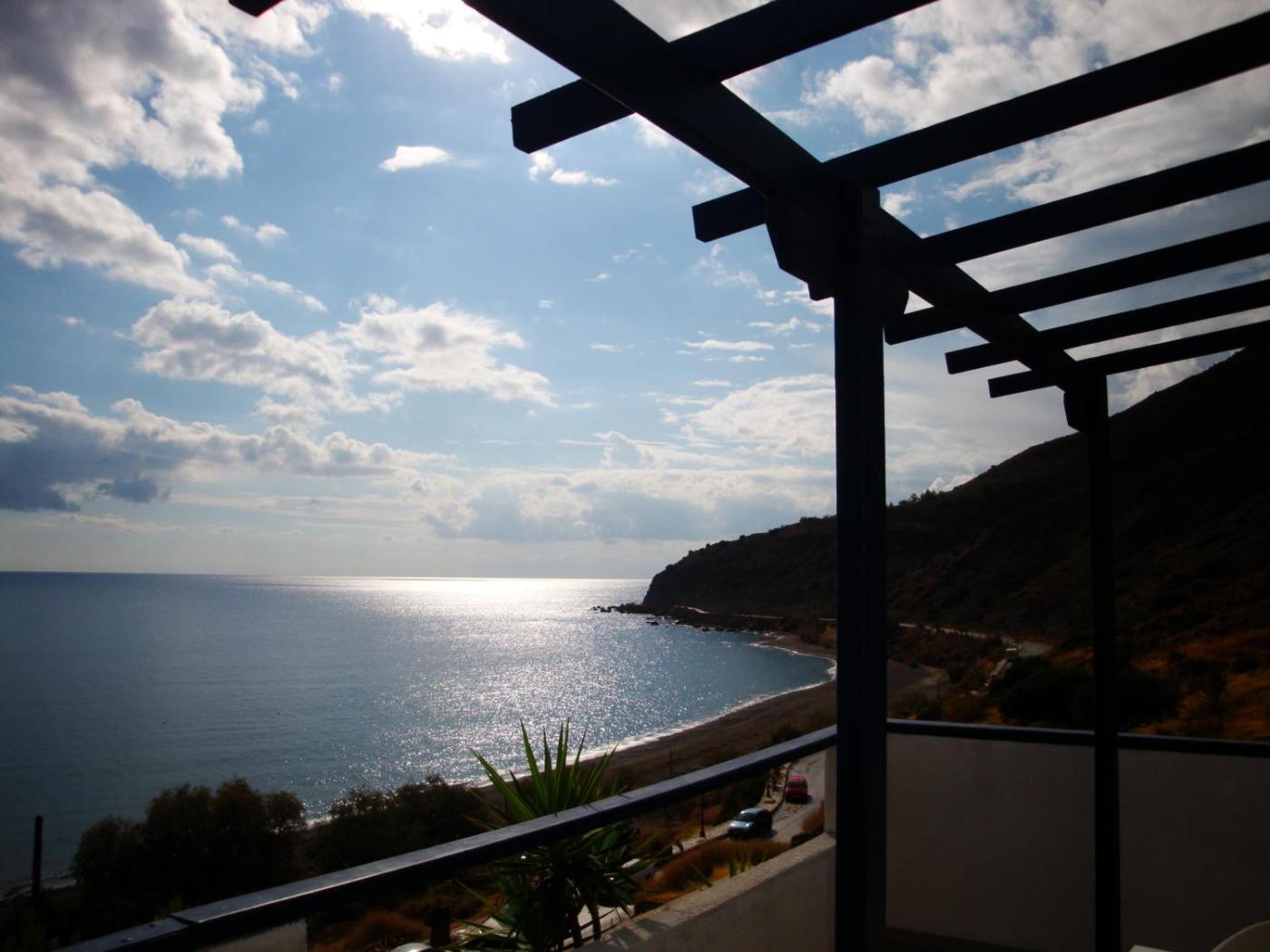 King Studio with Sea View. Located on the third floor, this air-conditioned studio is filled with light and offers panoramic views over the Mediterranean Sea from its pergola-covered terrace. It is decorated in a Cretan theme has a fully equipped kitchenette, TV, anatomic mattresses, free WiFi and it is easily accessible by car from the back. ;