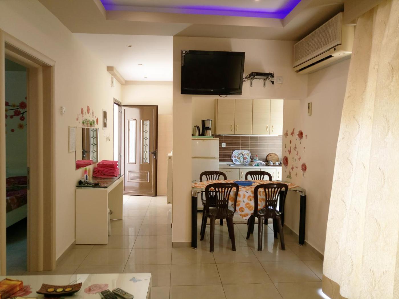 Holiday Home. Opening to a garden-view balcony, this air-conditioned apartment comes with free Wi-Fi access. It has a separate bedroom and an open-plan kitchenette with seating and dining area. A fridge, a small electric oven with cooking hobs, a flat-screen TV, a hairdryer, coffee machine, and kettle are available