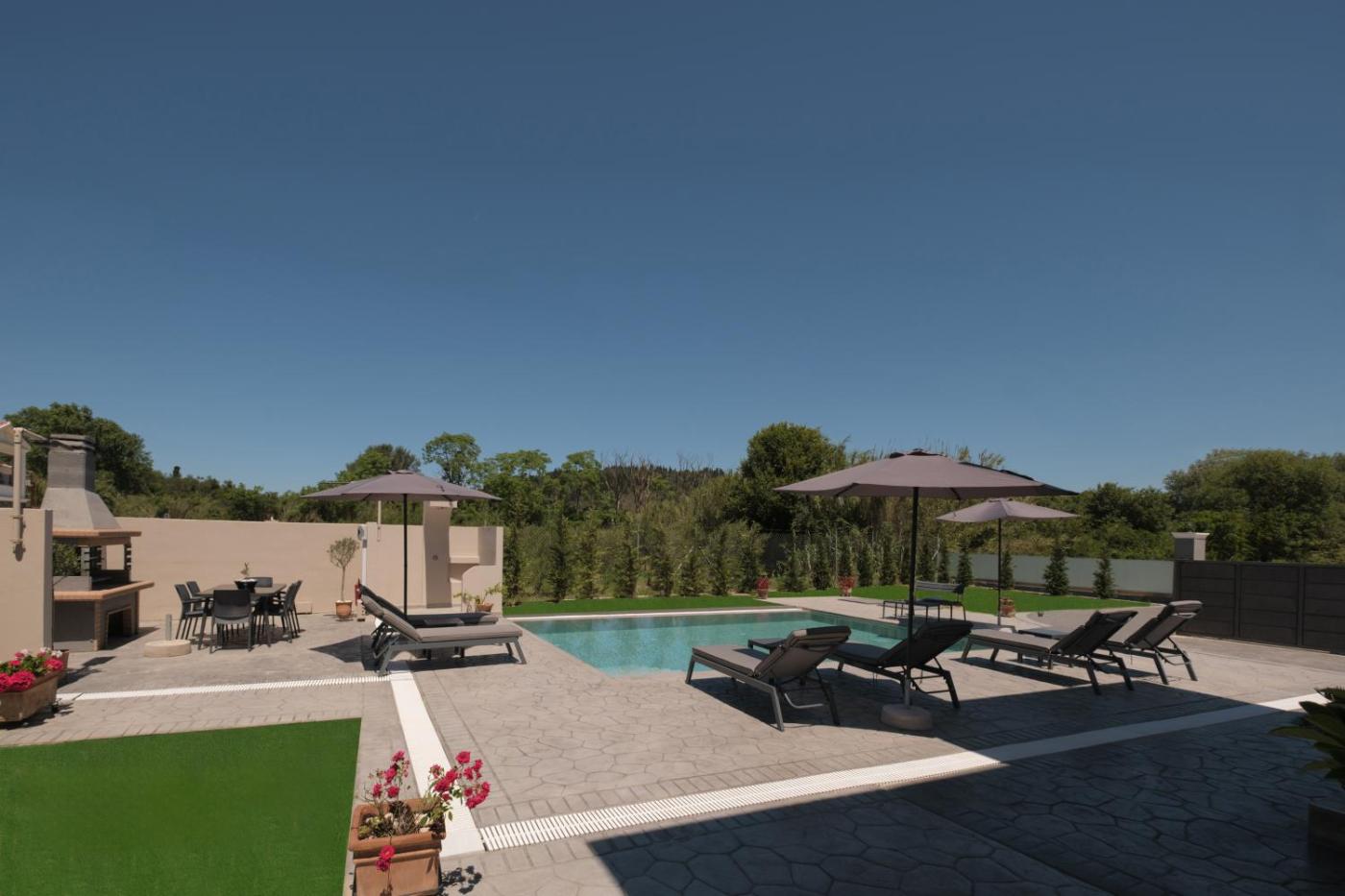 Junior Suite with Private Pool. The private pool is a top feature of this suite. Boasting a private entrance, this air-conditioned suite comes with 1 living room, 2 separate bedrooms and 2 bathrooms with a walk-in shower and a hairdryer. Guests will find a stovetop, a refrigerator, a dishwasher and kitchenware in the well-equipped kitchen. The suite also includes a barbecue. The spacious suite features a washing machine, soundproof walls, a tea and coffee maker as well as a terrace with garden views. The unit has 3 beds.