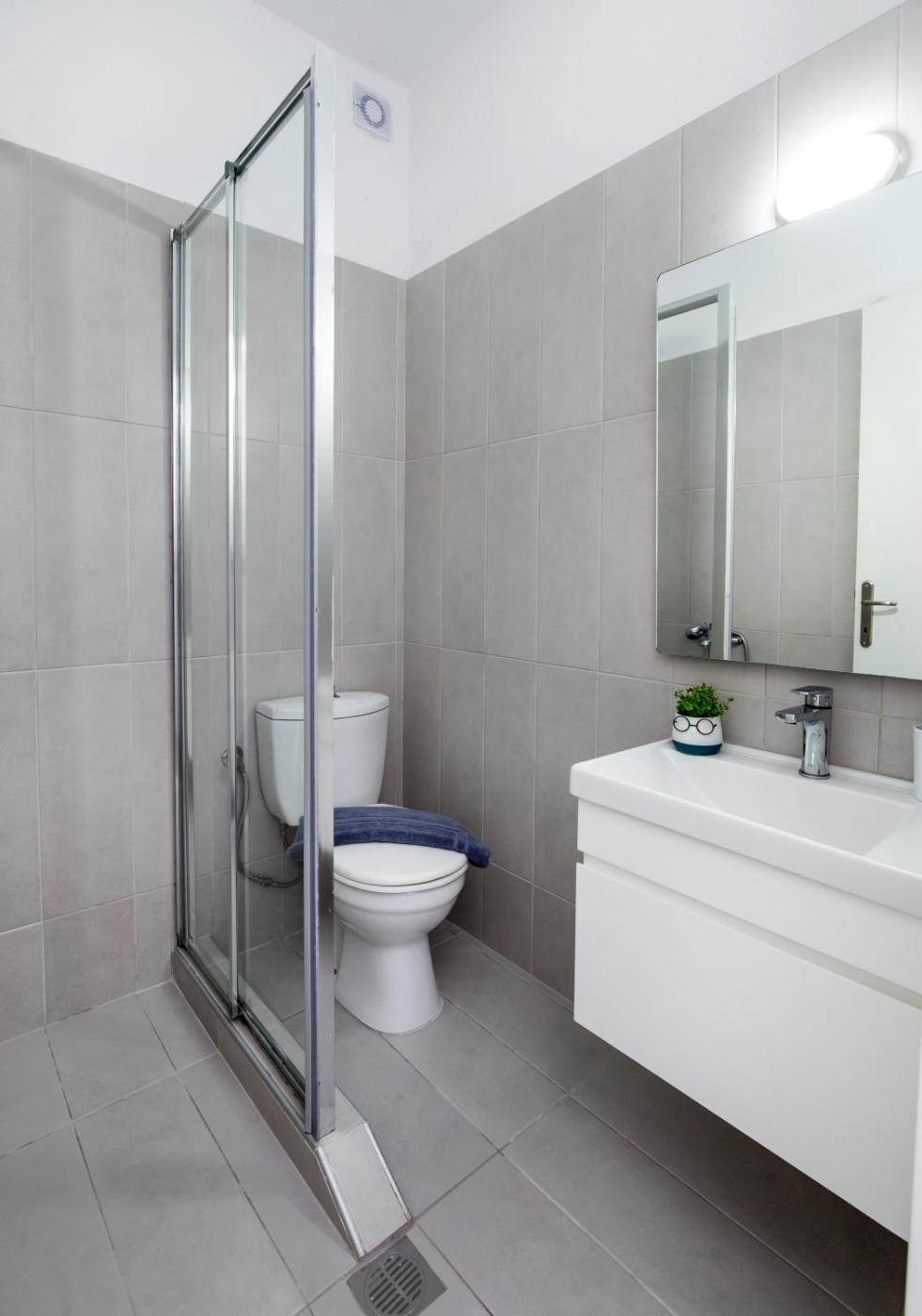 One-Bedroom Apartment. Featuring a private entrance, this air-conditioned apartment consists of a kitchenette, 1 bedroom and 1 bathroom with a shower and a hairdryer. The fully equipped kitchenette features a stovetop, a refrigerator, kitchenware and a tea and coffee maker. Boasting a terrace with sea views, this apartment also provides soundproof walls and a flat-screen TV with cable channels. The unit offers 2 beds. ;