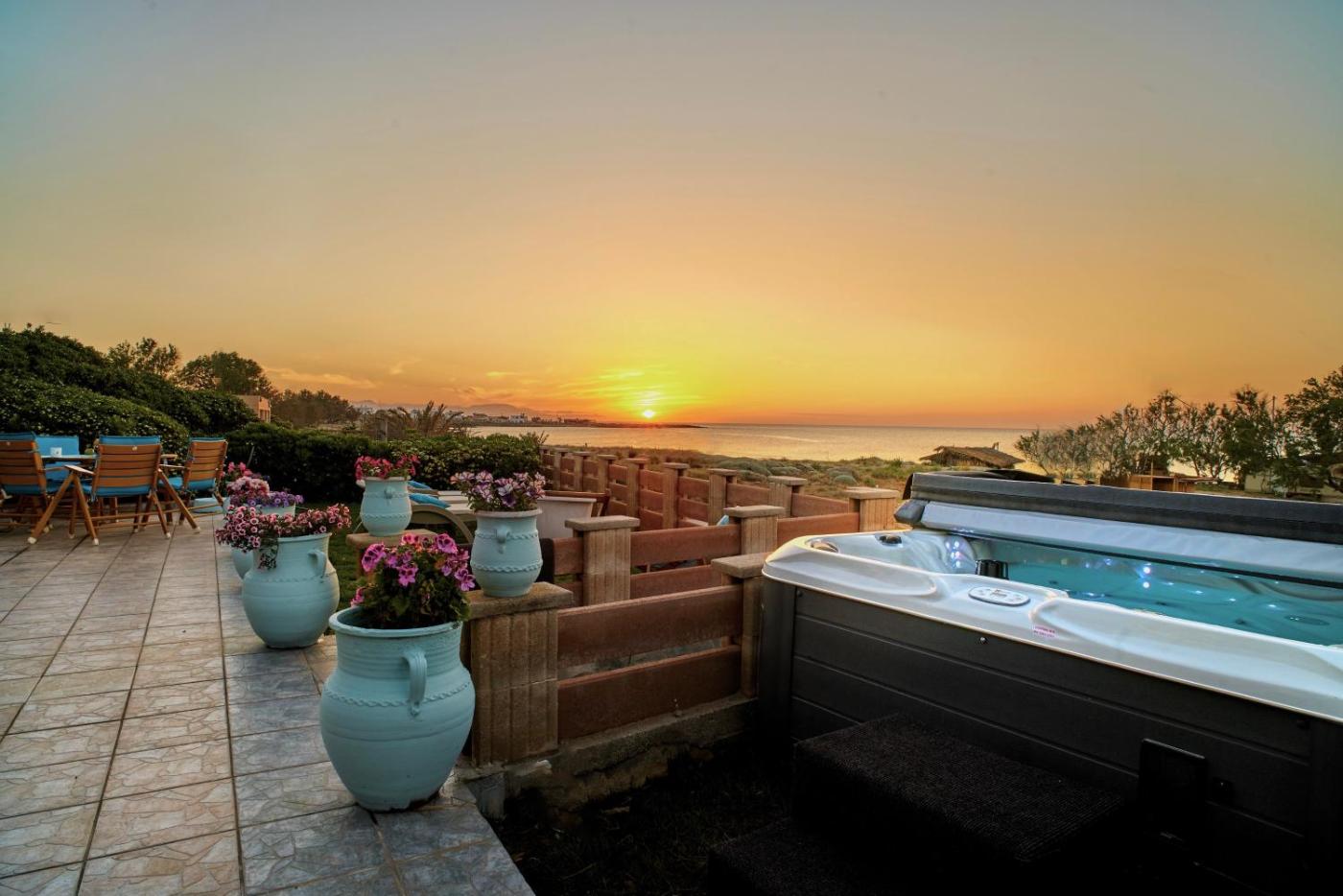 Featuring a patio with mountain views, a garden and barbecue facilities, Corali House can be found in Stavros, close to Sunset Beach and 8.3 km from The Holy Monastery of Agia Triada. This beachfront property offers access to a balcony. Offering free WiFi throughout the property, the non-smoking holiday home has a hot tub.
