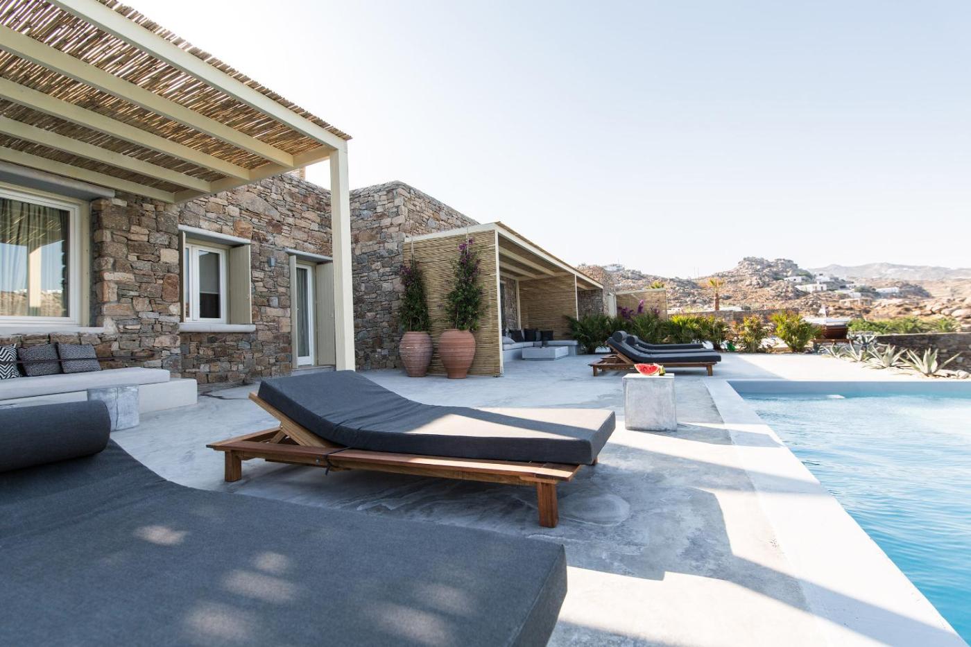 Five-Bedroom Villa with Sea View & Private Pool. Featuring a terrace with private pool, this tastefully decorated and air-conditioned villa offers 5 separate bedrooms. It features Aegean Sea views and provides: -flat-screen, satellite TV -free WiFi -minibar and dining table. ;