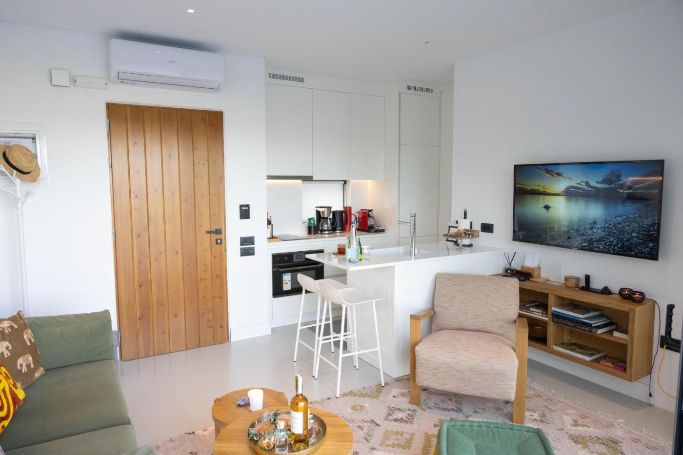 One-Bedroom Villa. Guests will have a special experience as this villa provides a pool with a view. Featuring a private entrance, this air-conditioned villa is comprised of 1 living room, 1 separate bedroom and 1 bathroom with a shower and a hairdryer. In the well-equipped kitchen, guests will find a stovetop, a refrigerator, kitchenware and an oven. Boasting a terrace with sea views, this villa also offers a washing machine and a flat-screen TV with satellite channels. The unit offers 2 beds.
